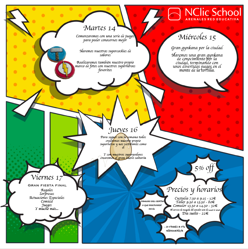 Taller de cocina, gymkanas, manualidades, taller de fotos de superhéroes, taller de creación de disfraces…y ¡mucho más!