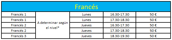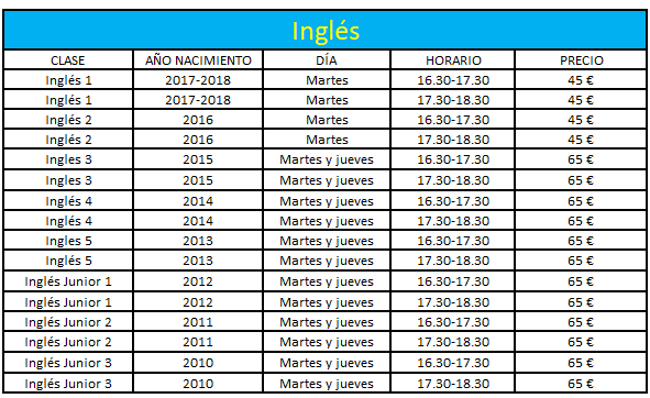 Además del precio mensual de las extraescolares existe una matrícula de 35€. Este importe se descuenta de la mensualidad de mayo, en caso de que el alumno haya realizado el curso completo.