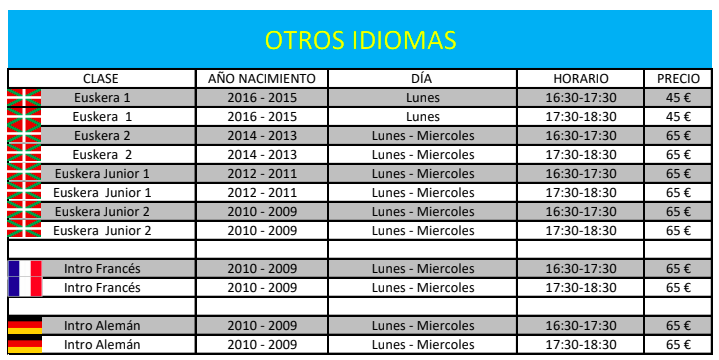 * «Little Learners» e «Inglés 1» de los lunes se impartirán en las escuelas de Salburua y Zabalgana.